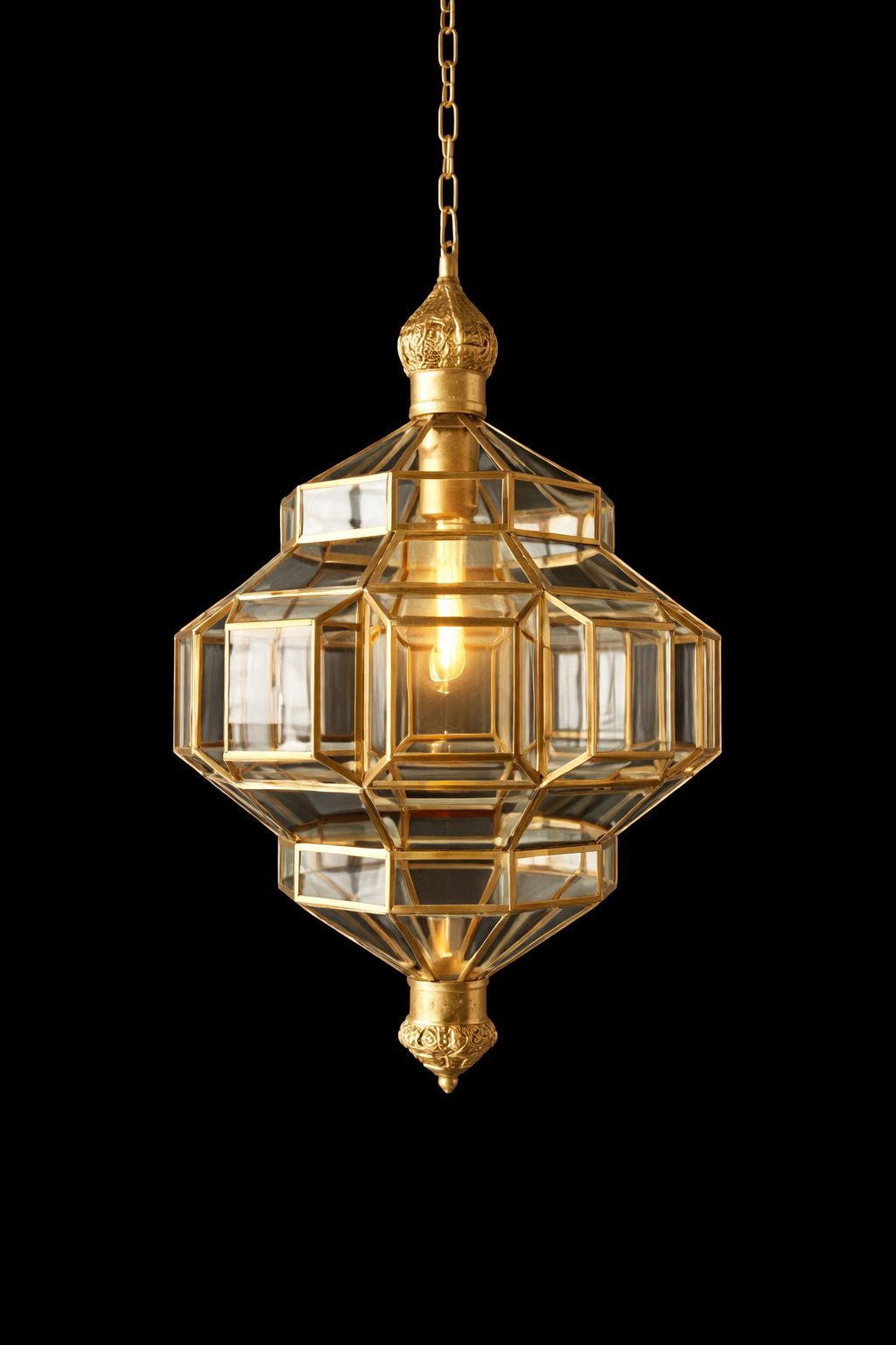 Candil de Latón con Cristal – Diseño Geométrico Elegante